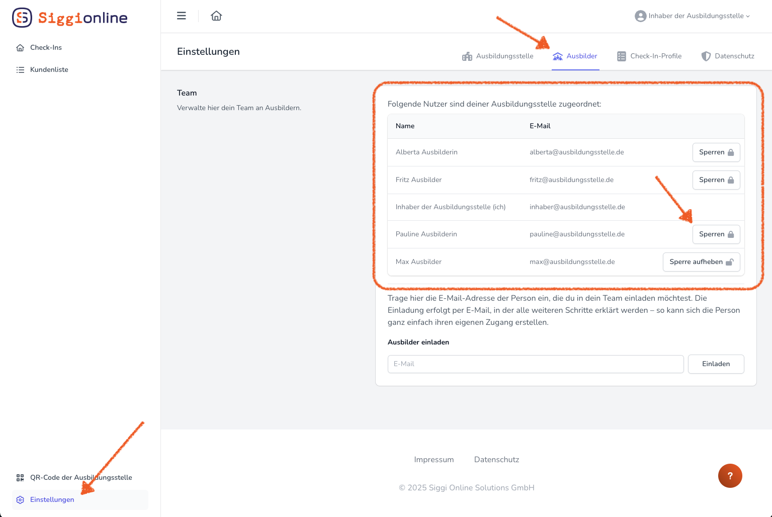 ✅ Tipp: Gesperrte Ausbilder bleiben weiterhin in deiner Übersicht sichtbar. Du kannst die Sperre jederzeit wieder aufheben.