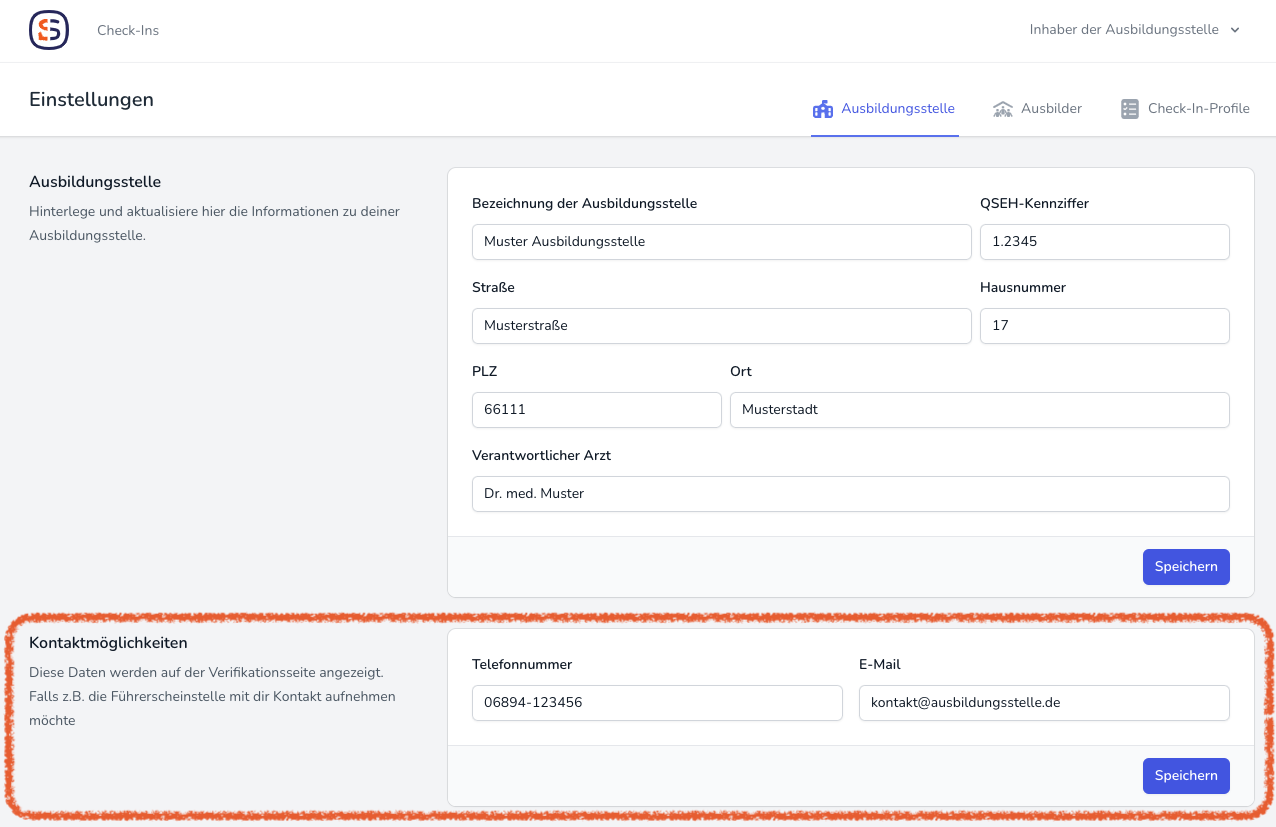 - Deine hinterlegten Kontaktdaten sollten jetzt in der Verifikationsansicht sichtbar sein.